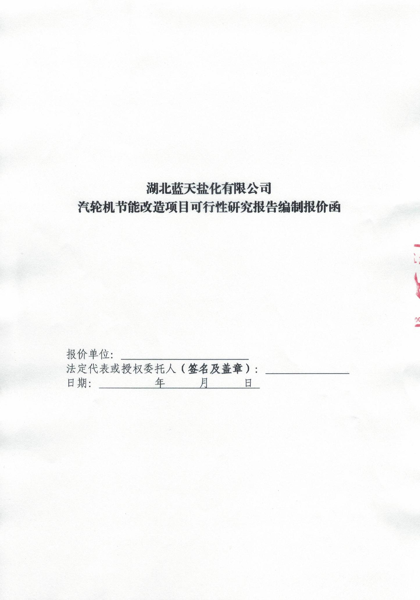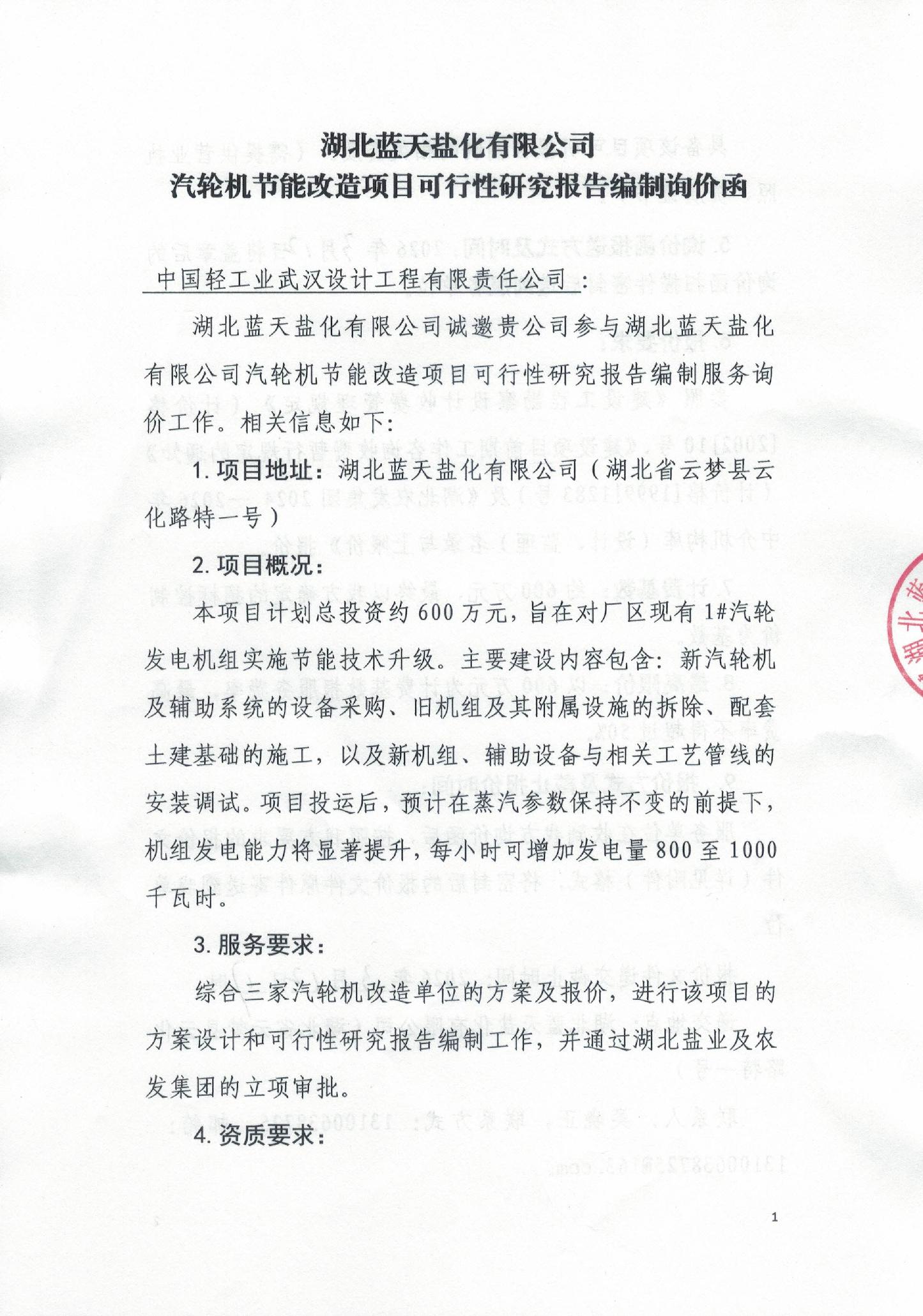 蓝天盐化---汽轮机节能改造项目可行性研究报告编制询价函(中国轻工)